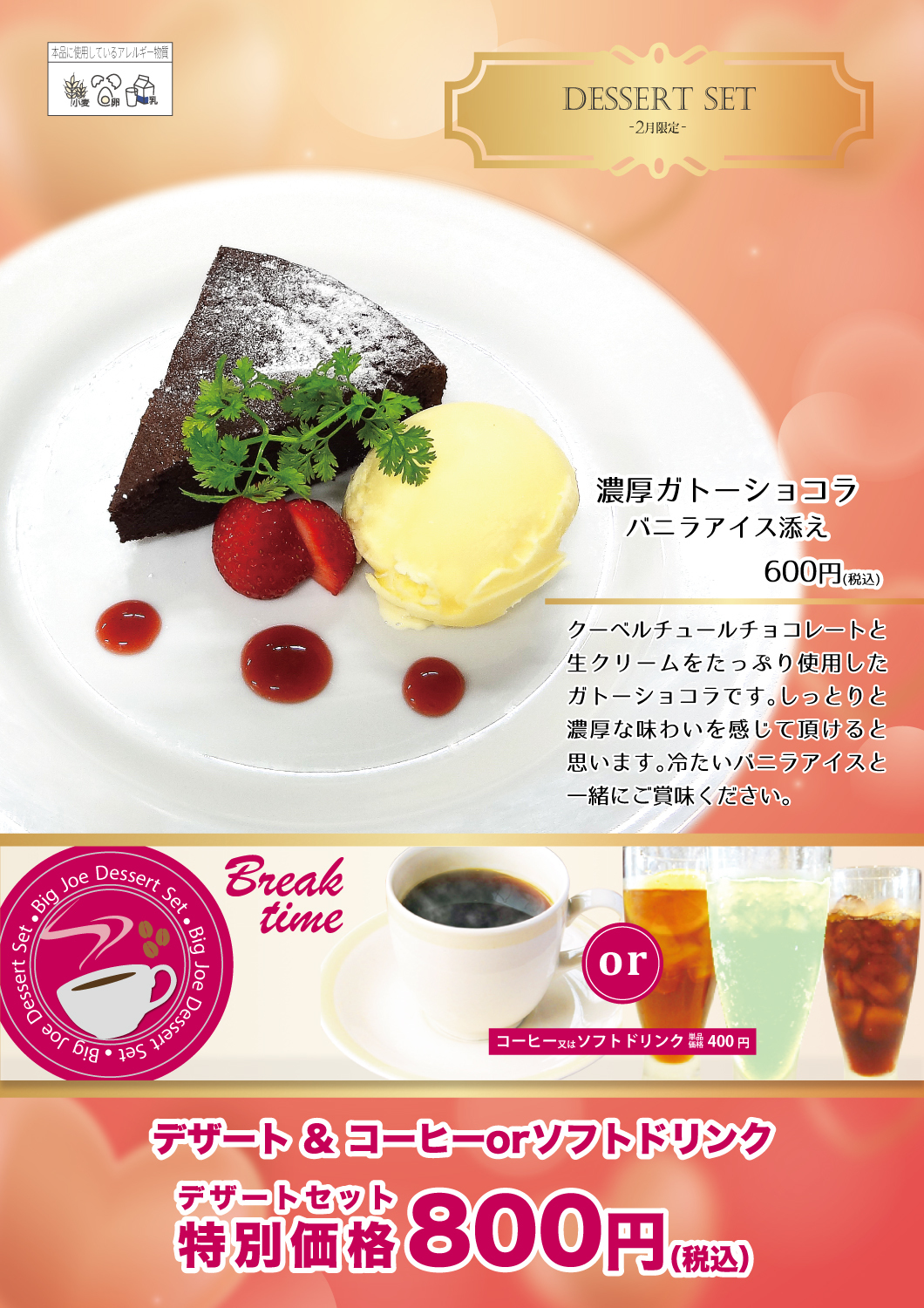 BigJoe富田林店限定・2月限定デザートセット